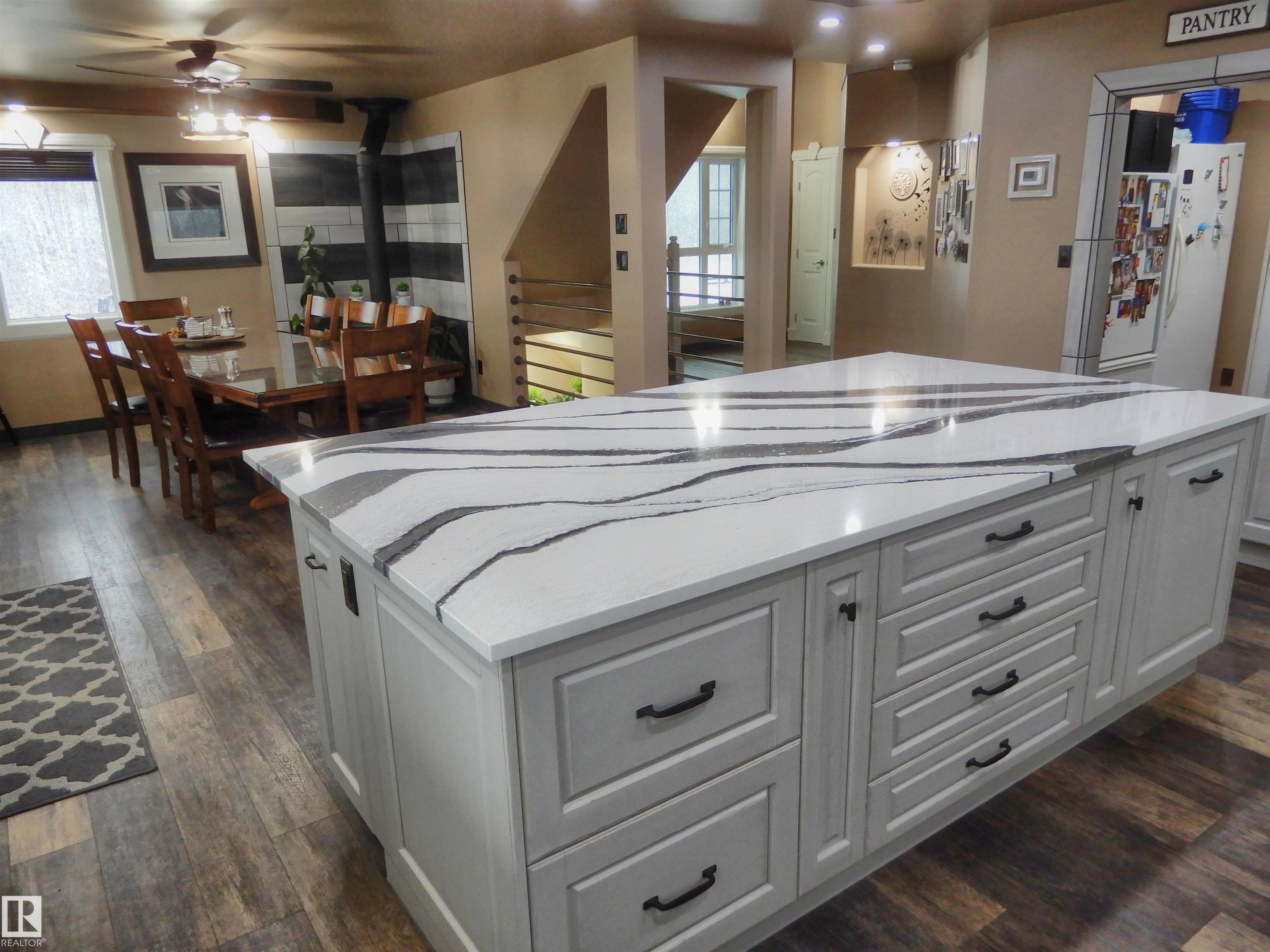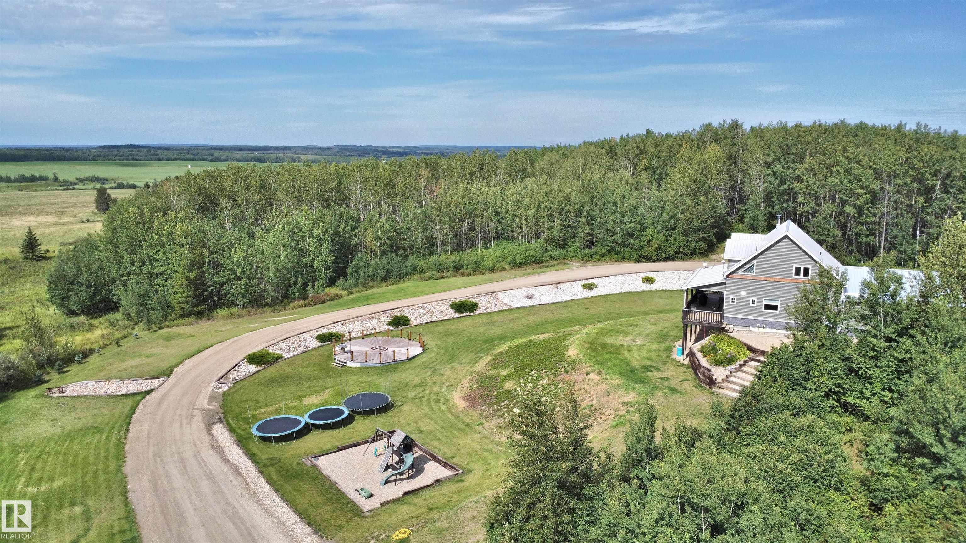WOW! 147 Acres of rolling hills with amazing views!! This incredibly beautiful property features a fully renovated 1 1/2 storey, 4 bedroom, 4 bath, hilltop home with a walkout basement. The chef in the family is going to love the magazine worthy kitchen featuring a massive eat-up island, ss appliances, quartz everywhere, huge pantry and the open dining area with cozy wood stove. Spend your morning drinking coffee on the covered deck while enjoying the spectacular view. Main floor includes a luxurious primary suite with fireplace, massive custom walk-in closet, and spa-like 5-piece ensuite. Top floor features 2 large bedrooms, 5 piece bath, and flex area. The fully finished, walk-out, basement features a family room, bedroom, 3 piece bath and laundry. Property includes a heated 40' x 33' shop, horse shelter, corrals, tons of quad trails and so much more. 40 minutes to Stony and 1 hour to Edmonton. Come see your new home!