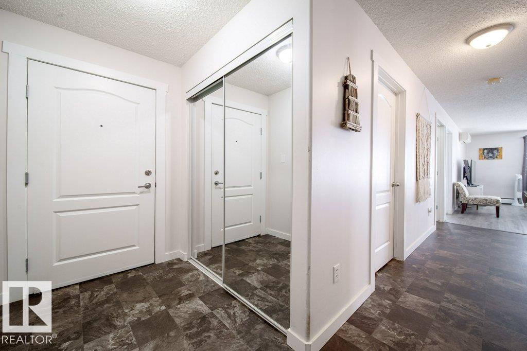Fantastic large End unit with South and East exposures. Air-conditioned. Bright and Open. Very Private. Two huge bedrooms, two 4 piece baths. Large storage and laundry room. Island kitchen with all stainless steel appliances. Brand new microwave oven hood fan. Master bedroom with 4 piece ensuite. One underground parking stall. Close shopping and parks. Easy access to Henday and Whitemud Freeway. Pet friendly building. Loads of visitor parking. Opportunity for first time buyers, seniors and investors.