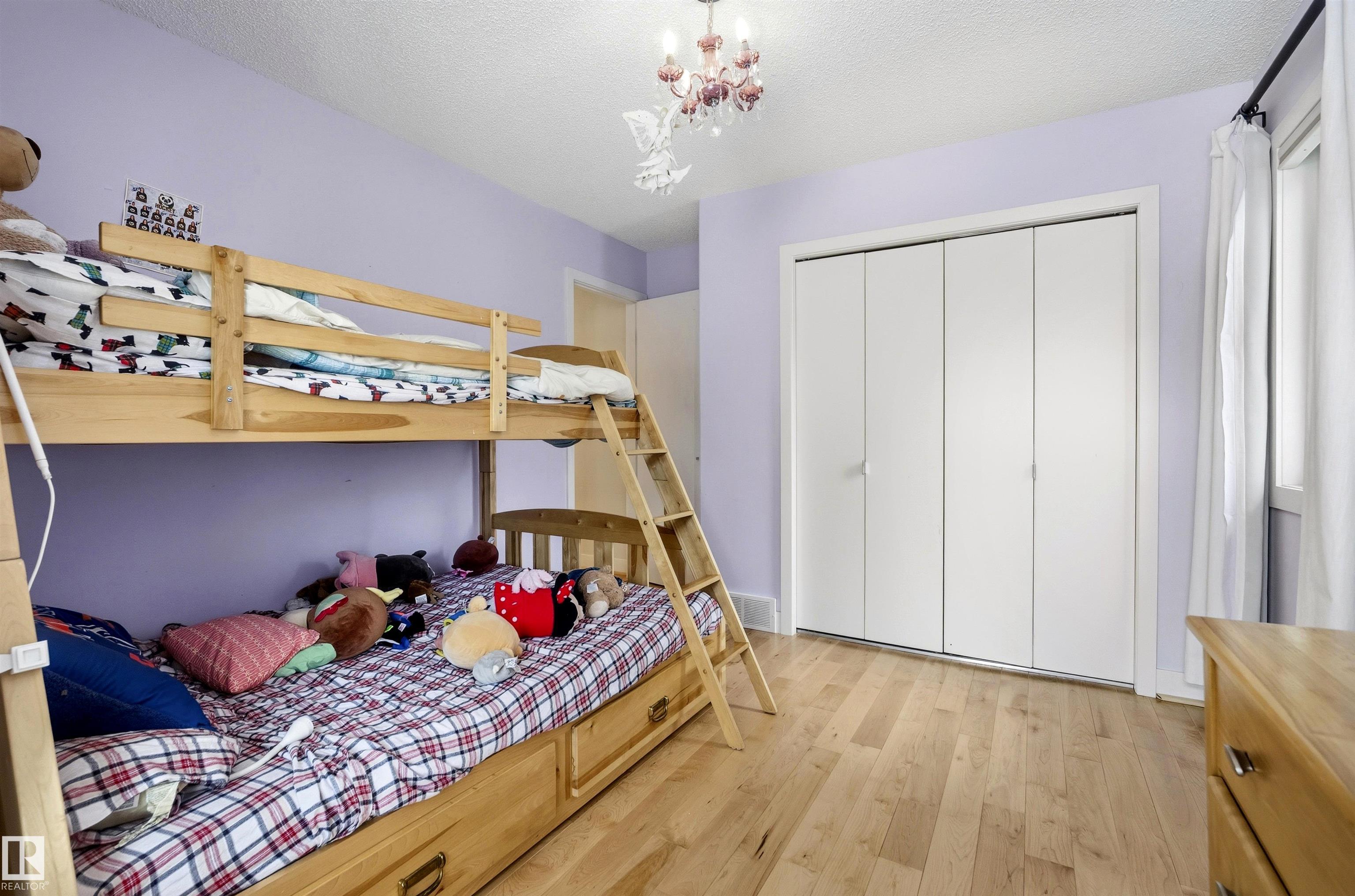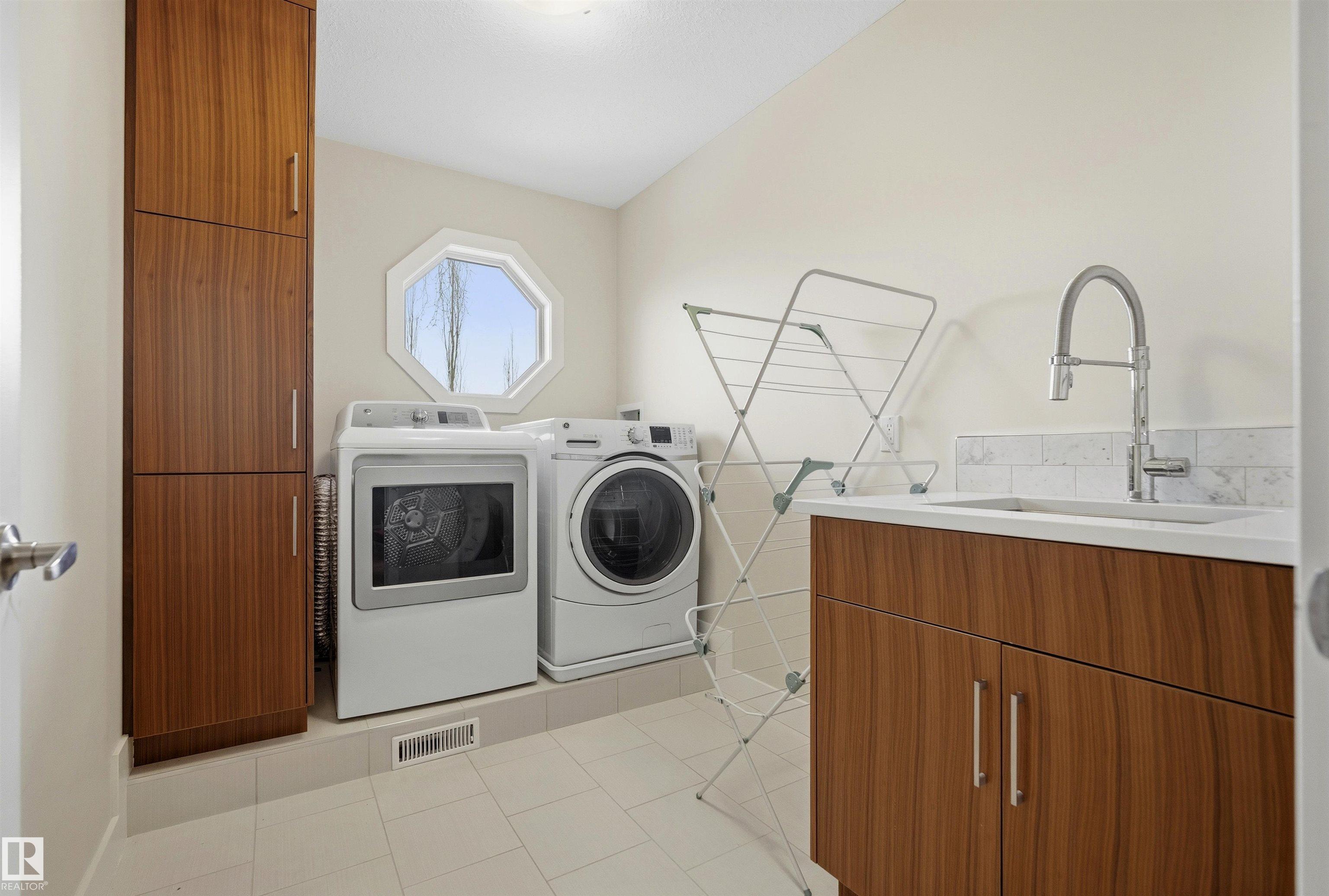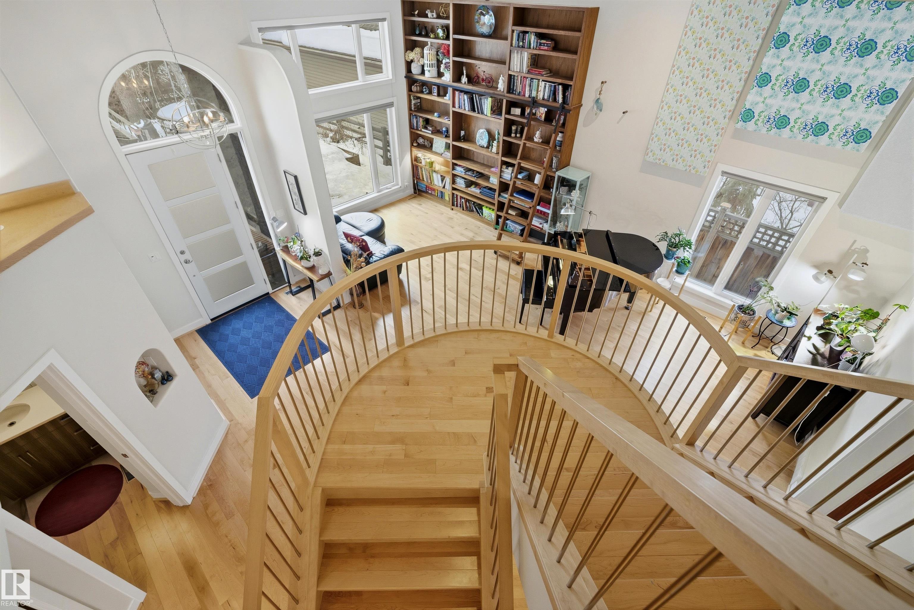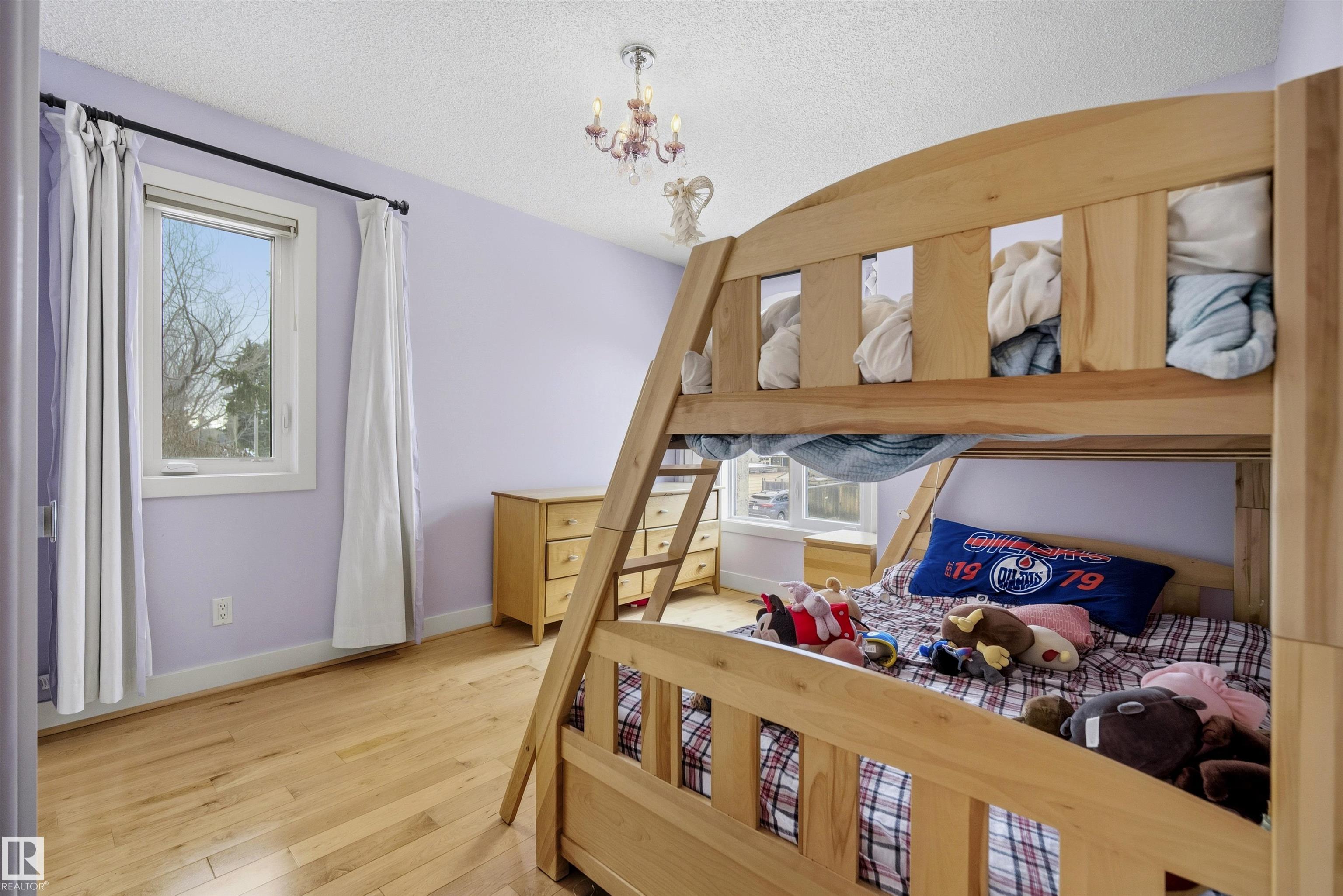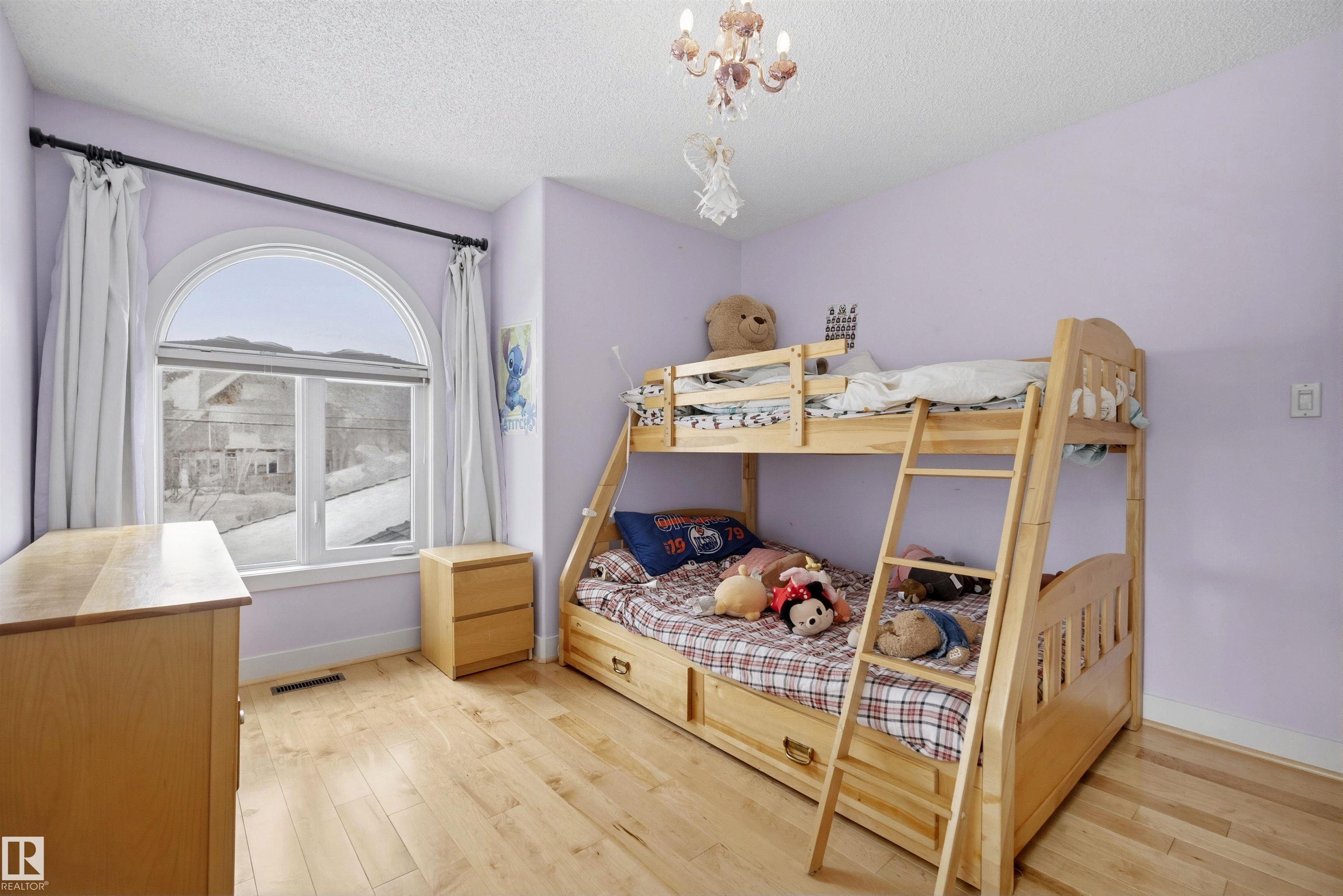 Modern traditional 2-storey in the heart of Bonnie Doon, steps to Mill Creek Ravine. Offering over 4,000 sq ft of living space, the warm hardwood floors and elevated modern finishes carry through every level. Soaring 20 ft ceilings, stacked windows, and open staircase create a dramatic first impression. The kitchen features quartz countertops, stainless steel appliances, and flat-panel cabinetry, flowing into the dining area with patio doors to a tree-lined yard and entertaining deck. A second living room wrapped in windows with a gas fireplace anchors the main floor, alongside an office and mudroom with access to the double attached garage. Upstairs, the primary retreat impresses with a spa-inspired ensuite and walk-in closet, joined by two additional bedrooms, a 5-piece bath, and laundry. The lower level has a family room with wet bar, gym space, 4th bedroom, full bath, and storage with garage access. Set on an expansive 50x185 lot ? steps to schools, ravine trails, and the best of Bonnie Doon living.