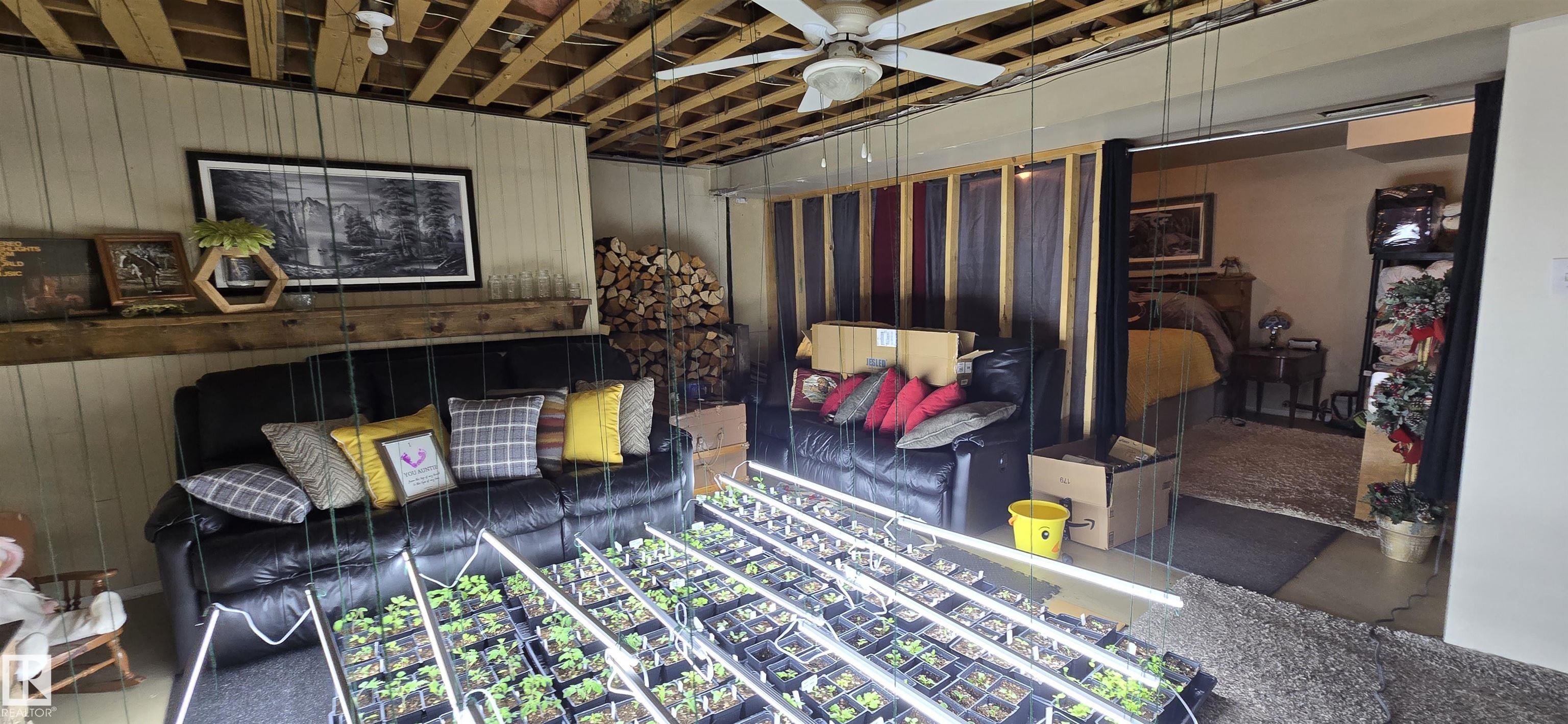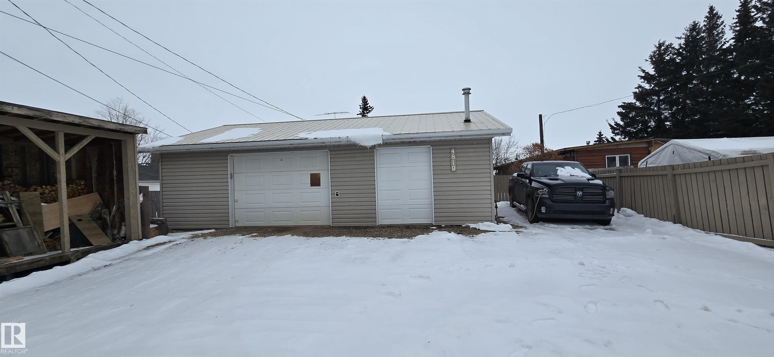 Very well kept bungalow on the edge of Holden! Open concept flow from the living room into the kitchen with counter top seating. Uprades in past years with paint, flooring, countertops, cupboards, plumbing/electrical fixtures, furnace, metal roof, exposed aggregate patio/sidewalks and more. Basement features a living room with a wood burning fireplace, den area, storage and laundry room with 2 piece bath. BEAUTIFUL south facing fully fenced yard to enjoy off the pergola covered exposed aggregate patio! NOW THE GARAGE! Divided into two areas perfect for workshop are/ or the toys. The other side for your vehicle and well...more toys! Insulated with boiler heat. Additional rear parking.