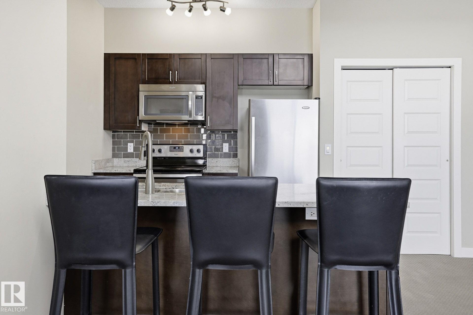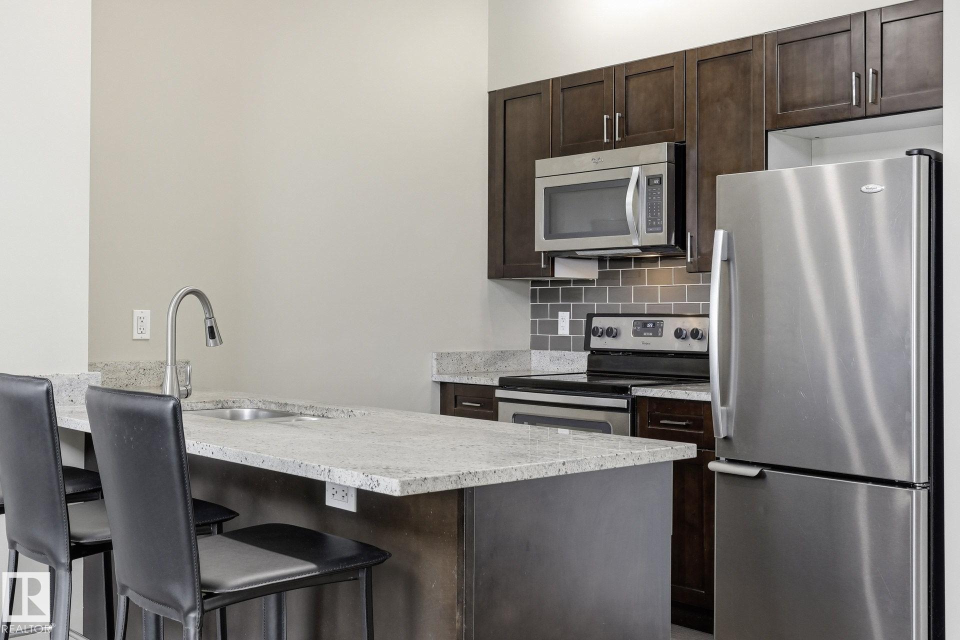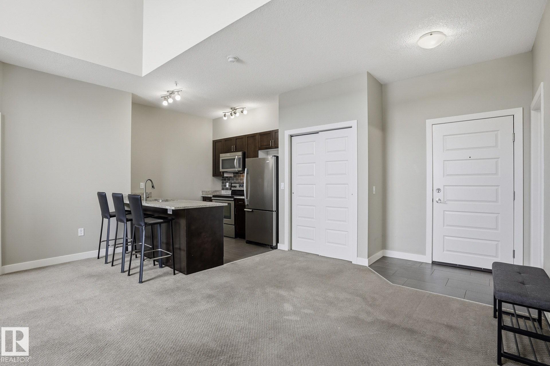 Welcome to this well-maintained top-floor 2 bedroom condo in the highly desirable Windermere community. Built with steel & concrete construction, this building offers superior soundproofing & durability, along with in-floor heating for year-round comfort. The bright open-concept layout features 16? ceilings in the living room & 9? ceilings throughout, creating a spacious & airy feel with floor to ceiling windows allowing plenty of natural light flow through. The modern kitchen overlooks the dining area & is finished with beautiful granite countertops. The primary bedroom features a walk-through closet & 3-piece ensuite while the 2nd bedroom is generously sized & located near the 4-piece main bathroom. This unit includes 2 titled parking stalls (1 underground parking & 1 outdoor). Conveniently located within walking distance to shopping, parks, ponds & public transit everything you'll need is minutes away. You'll also enjoy easy access to Anthony Henday & Whitemud Dr connecting you to the rest of the city!