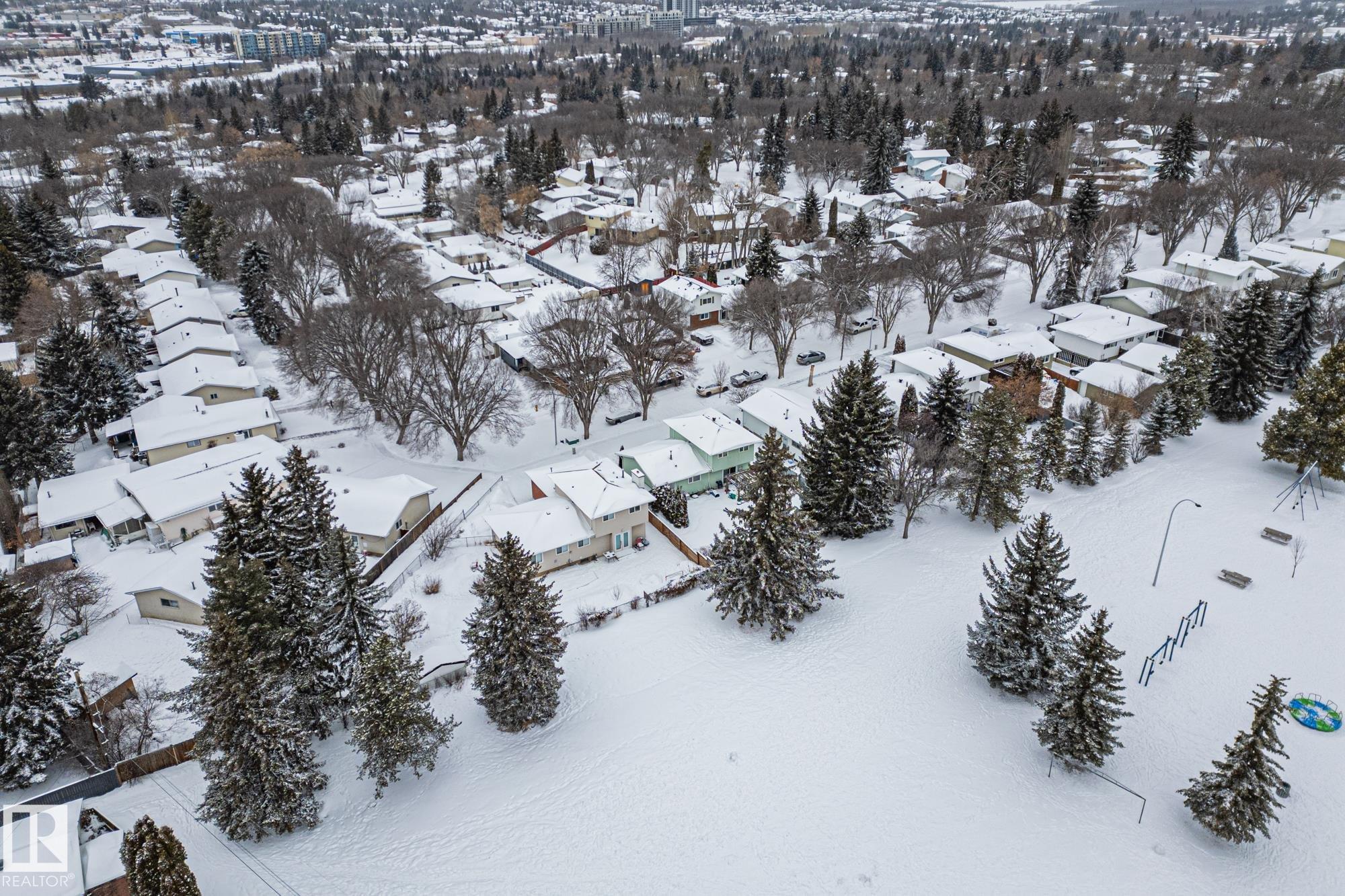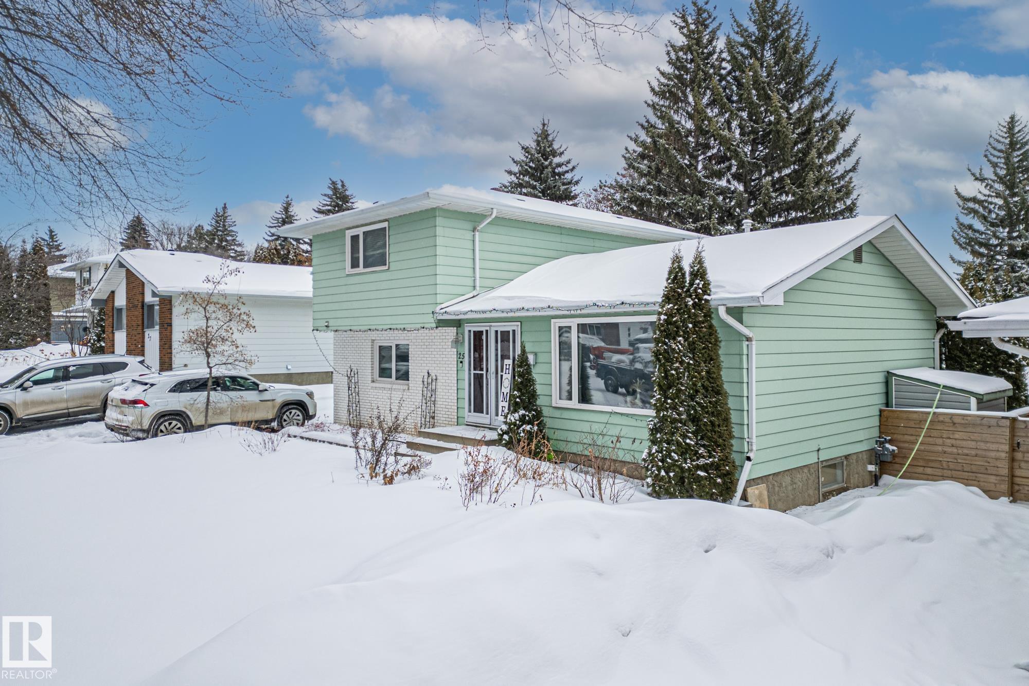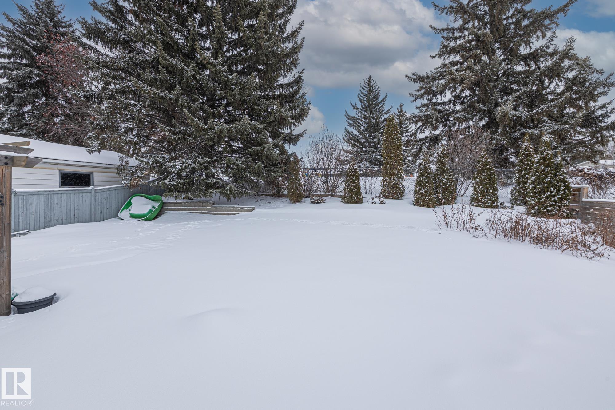 In the tree lined streets of Braeside lies a hidden gem with a large yard and BACKING onto the SAM School field. This 1500+ SQFT home is excellent for a first time buyer or young family. Greeting your entry is a bright living room perfect for entertaining. The island kitchen offers the perfect view of the kids playing in the HUGE backyard. Enjoy family dinners in the adjoining dining room. Relax in the family room off the kitchen with access to the backyard. A full bath and bedroom, that would make a perfect office space or kids playroom, complete the main floor. Upstairs you have 3 ample bedrooms and a full bath. The primary suite boasts a walk-in closet space. Situated in the middle of town you have easy access to both of the major commuter routes and all the amenities that St. Albert has to offer. Including being only a short walk to St. Albert's extensive river trail system and in the summer visit the Farmers Market without ever having to worry about parking!