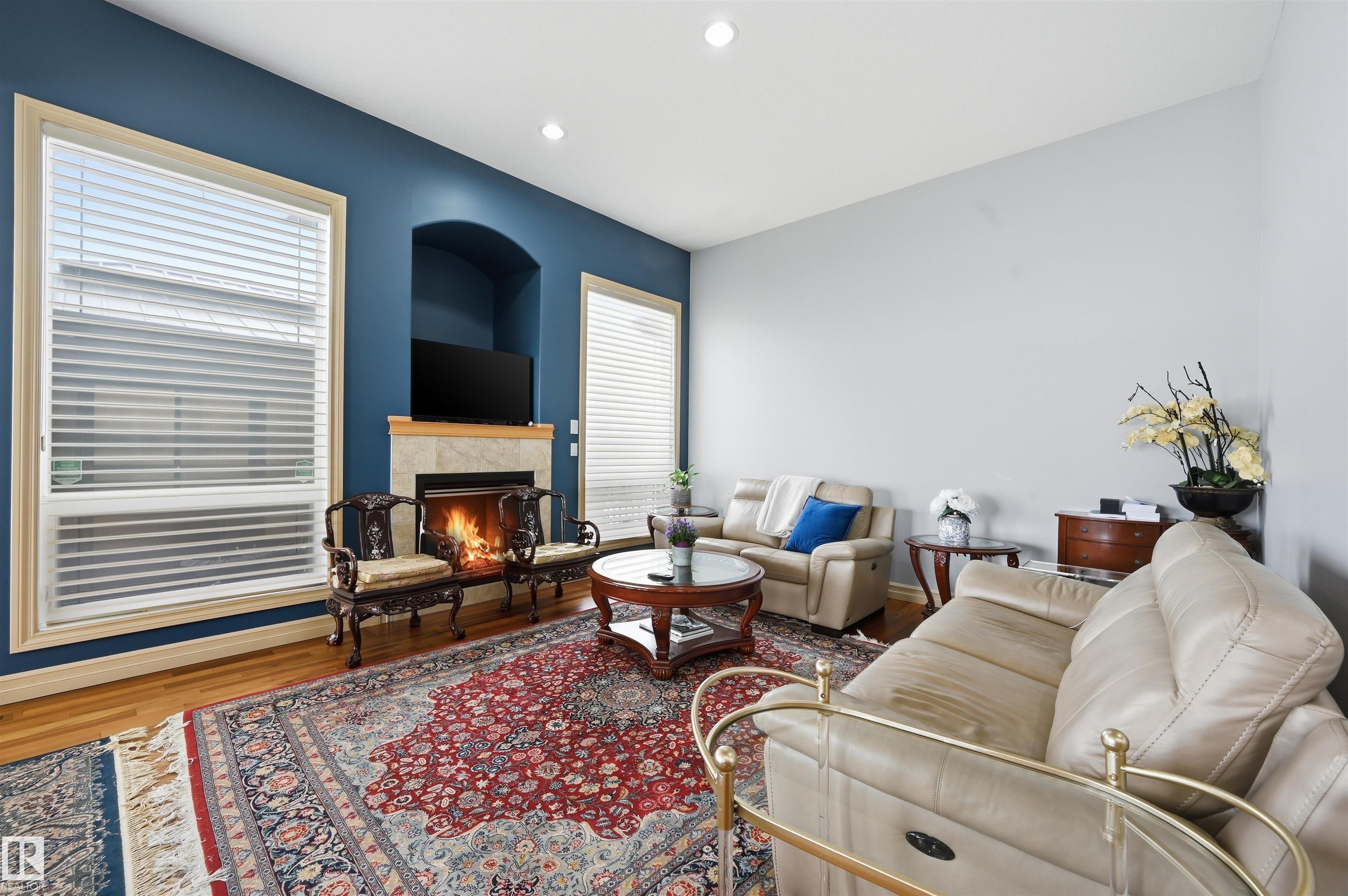EXCEPTIONAL WALK OUT LUXURY 4 bedrm bungalow. Backing to a DRY POND & treed green space nestled in a cul de sac in the popular neighborhood of Riverside. Approx 3500 sf of luxury living space (1811 sf above grade). Open sunny plan is perfect for entertaining & family gatherings. Soaring 11/9 ft ceilings add to the airiness of this cheery home. Gourmet Chef?s kitchen w/granite counters, NEWER S/S appliances & large W/I pantry. Brazilian hardwood & tile flooring adorns much of the main. Main floor features a FLEX (dining/den) rm w/French drs, laundry & RARE second bedroom/ full bathrm. Spacious primary bedrm w/luxurious ensuite. Lower level has newer flooring, IN FLOOR heating, 2 large bedrms, games area w/wetbar, B/I entertainment centre, 2nd FP & a 3rd full bathrm (upg w/quartz). 9 ft ceilings, upgraded humidifier, BBQ gas line, A/C 2024, U/G sprinklers, newer H20 tank, $20K gazebo, HEATED O/S garage w/epoxy floors. West facing 7500 sf pie yard w/fruit trees. Access to Rec Centre & multiple schools & EIA