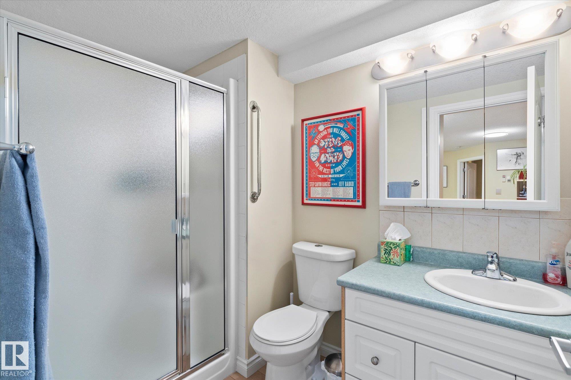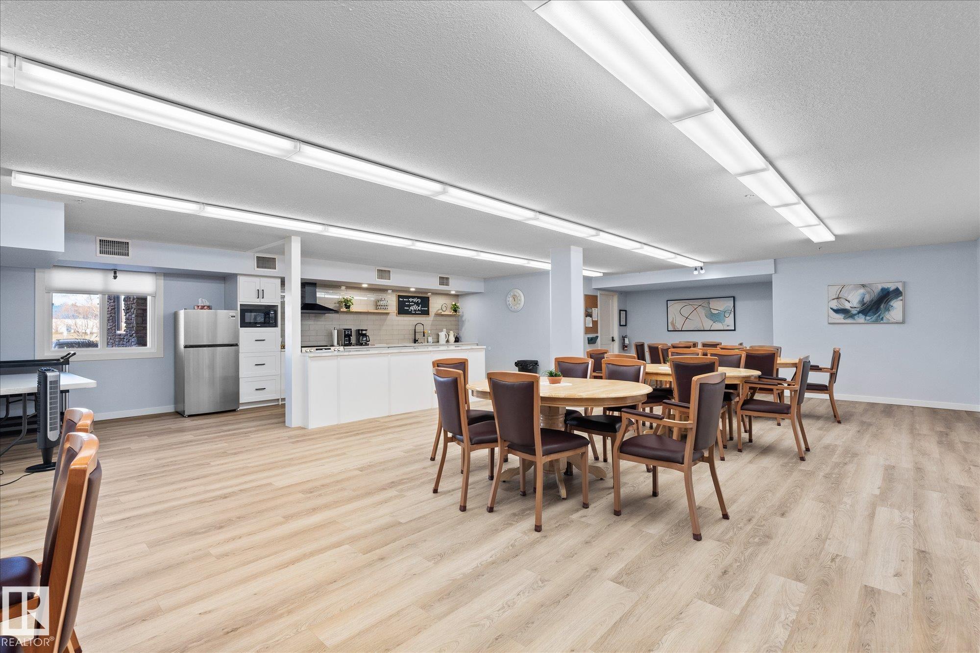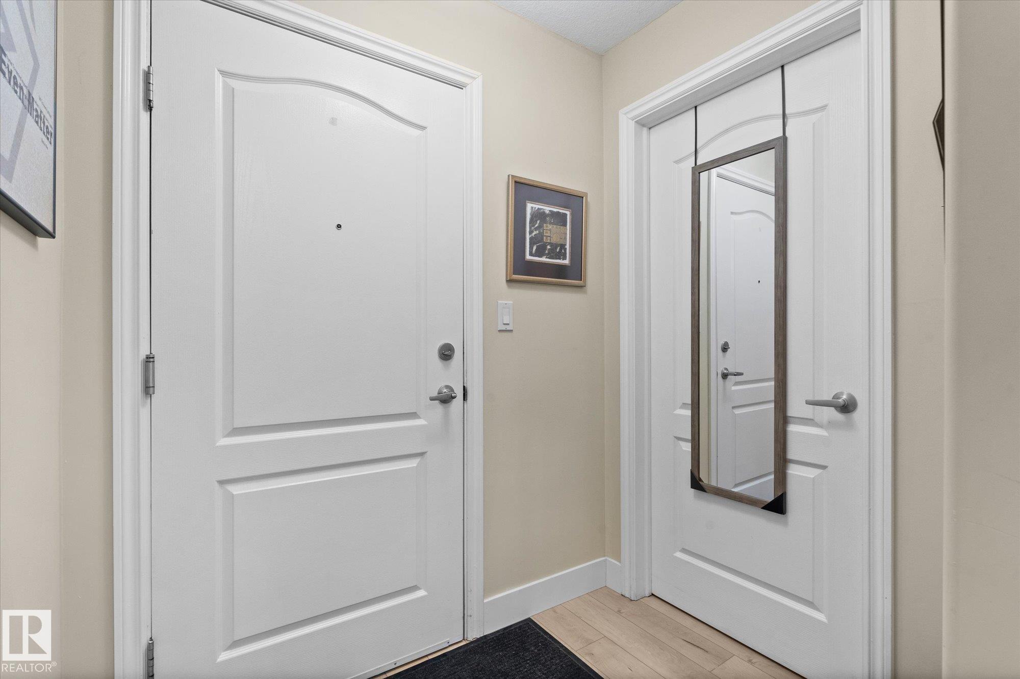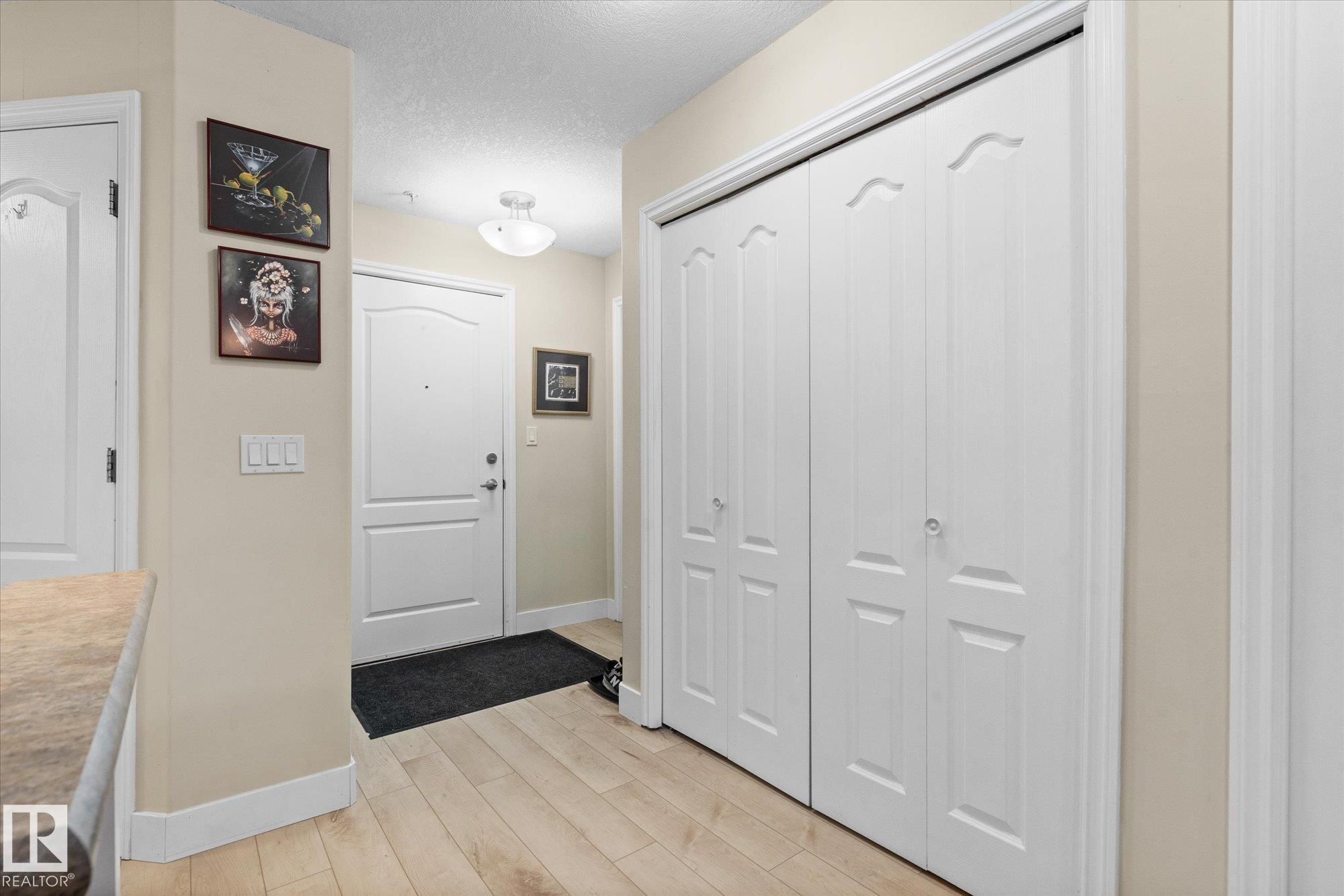 Welcome to this beautiful main floor condo in a sought-after 45+ community, offering comfort, convenience and a fantastic layout. The bright open-concept living and kitchen area is perfect for entertaining or relaxing at home. The living room and spacious primary bedroom both open onto a private patio overlooking peaceful green space, creating a quiet retreat to enjoy your morning coffee or evening unwind. The patio also features a natural gas hookup, perfect for easy outdoor grilling. This well-designed home offers 2 generous bedrooms and 2 full bathrooms, plus the convenience of in-suite laundry and ample storage. Updated vinyl plank flooring provides a modern look with easy maintenance. Enjoy the added value of heat and water included in the condo fees. A rare bonus is the extra-wide underground parking stall with additional storage. Stay comfortable year-round with air conditioning. A fantastic opportunity in a great location!