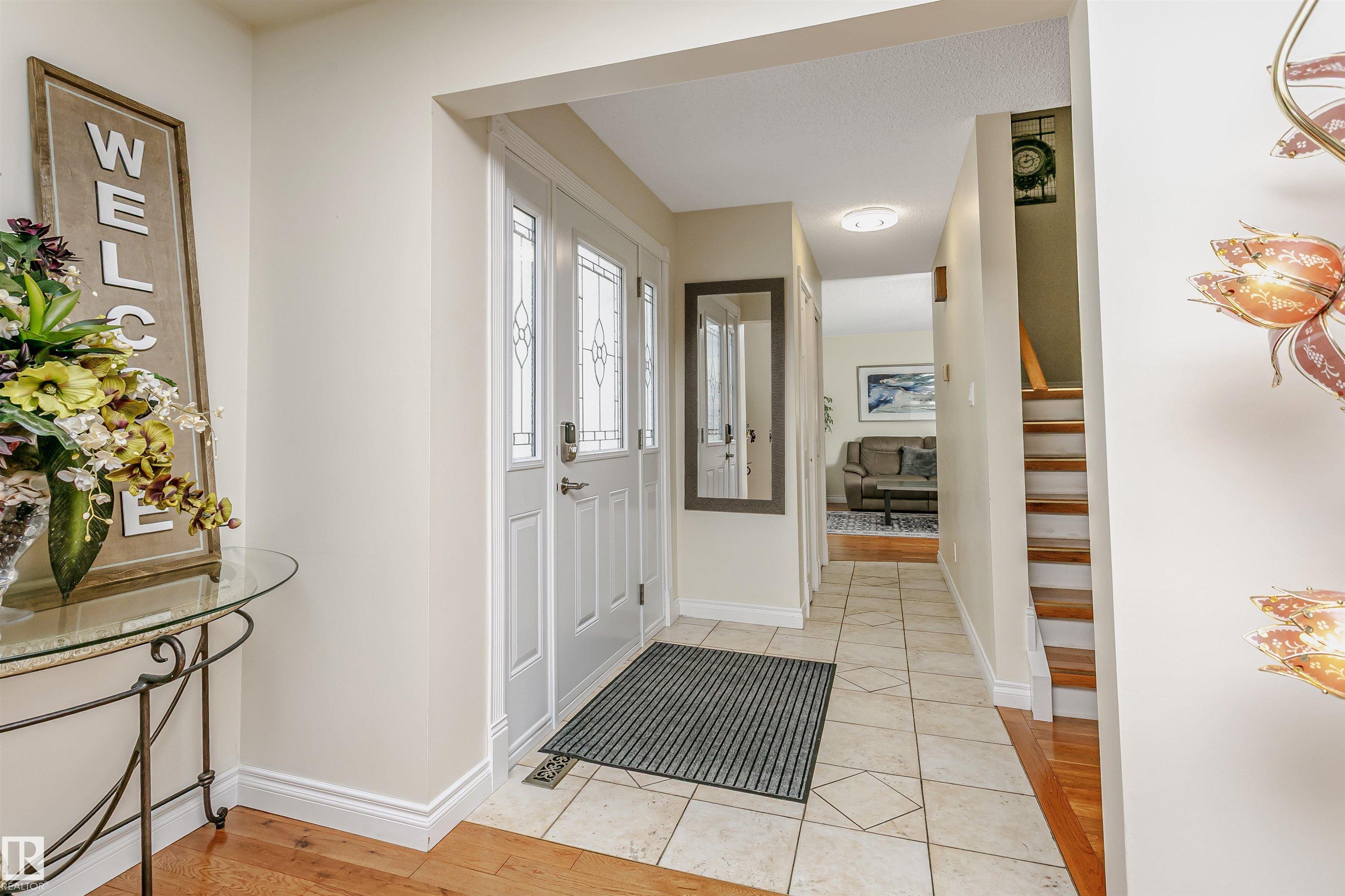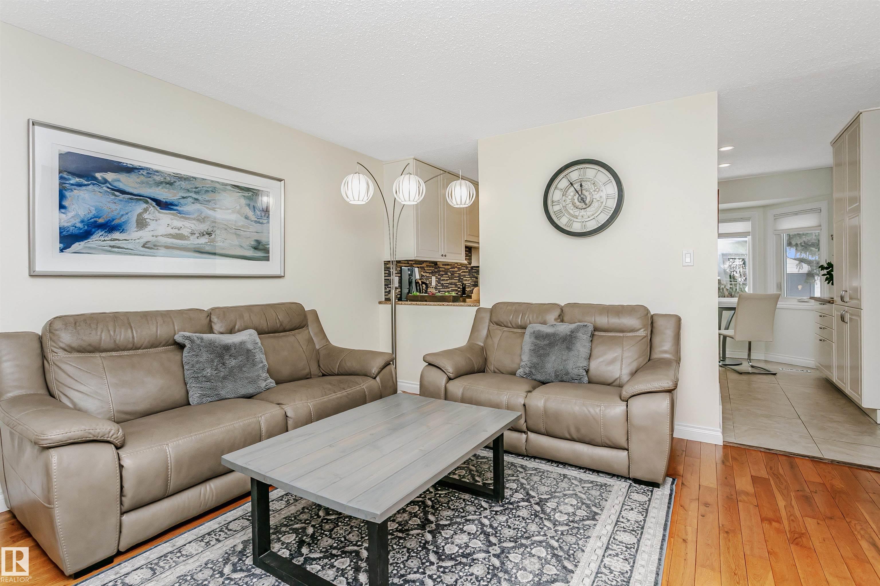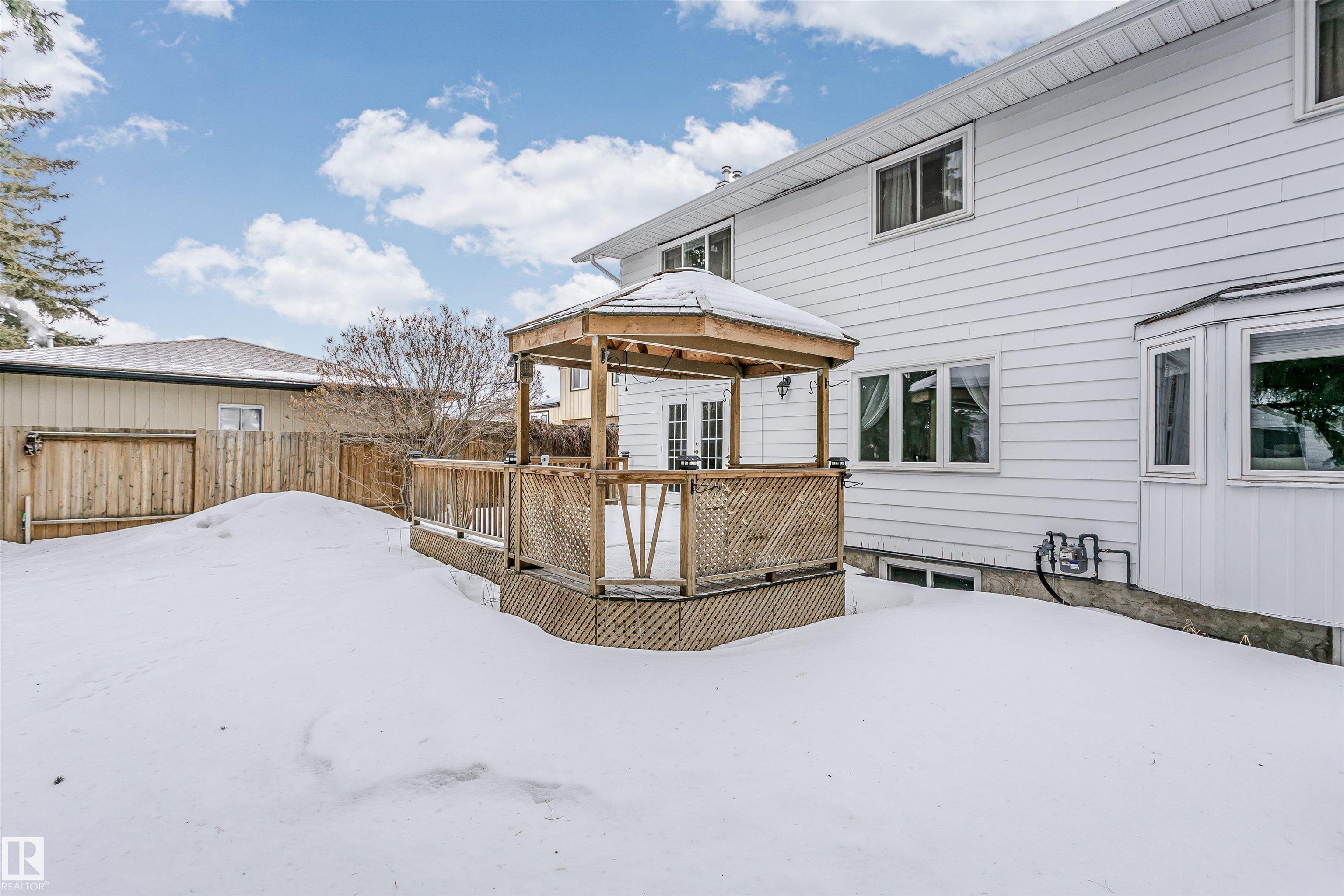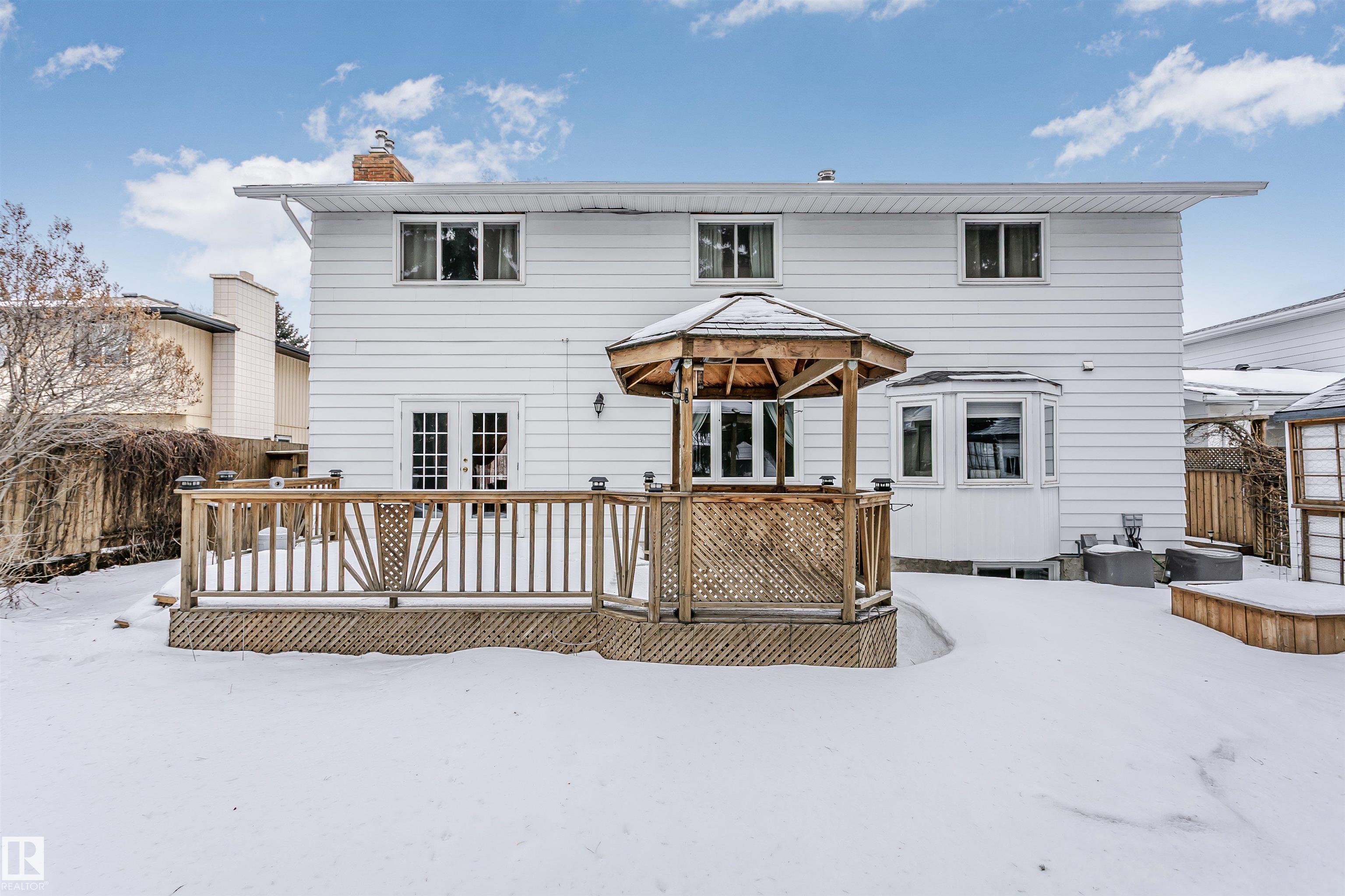 Executive 2-storey, 5 bedrooms, 3.5 bathrooms. It offers elegance & magnificent living spaces, with comfort & functionality. Kitchen w/ quartz counter tops, under mount lighting, gorgeous white cabinetry, ceramic tile flooring, trendy backsplash and stainless steel appliances. Two large living room areas on the main level, one with gas fireplace. Main floor also offers 2-pc powder room, laundry room and access to heated double attached garage. Upstairs you will find 4 bedrooms. Large Primary with a walk-in closet and updated spa-like ensuite. Fully finished basement offers game room with gas fireplace, 5th bedroom, 3-pc bath & storage room. Further features include: high end finishings, gleaming hardwood floors, new windows, new front door, new the garage door, 2 AC units, large deck with built-in gazebo. Beautifully landscaped backyard. Enjoy the sunset views from your Southwest facing backyard. Quick access to WEM, Whitemud A. Henday & future LRT. Close to schools, parks & shopping.