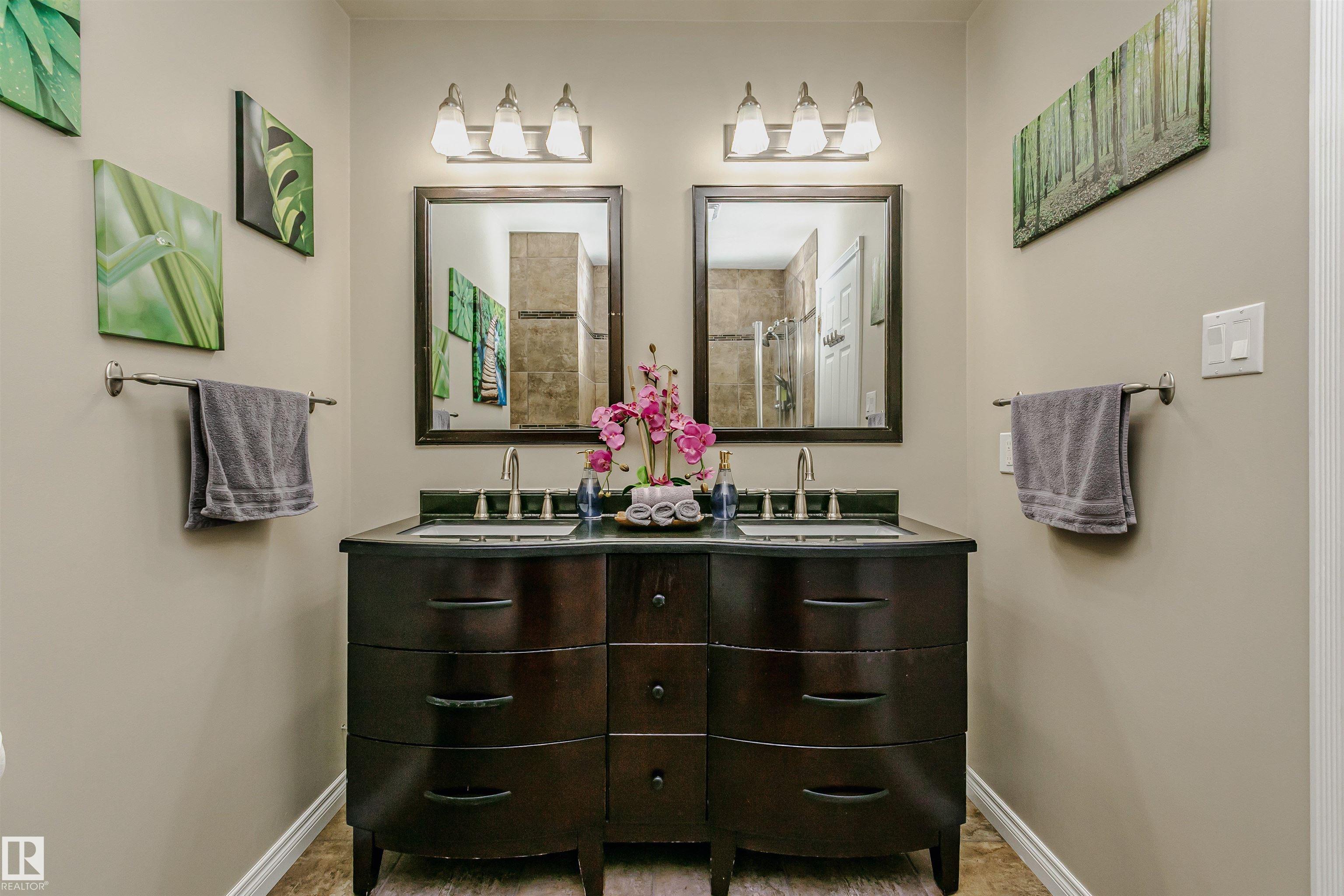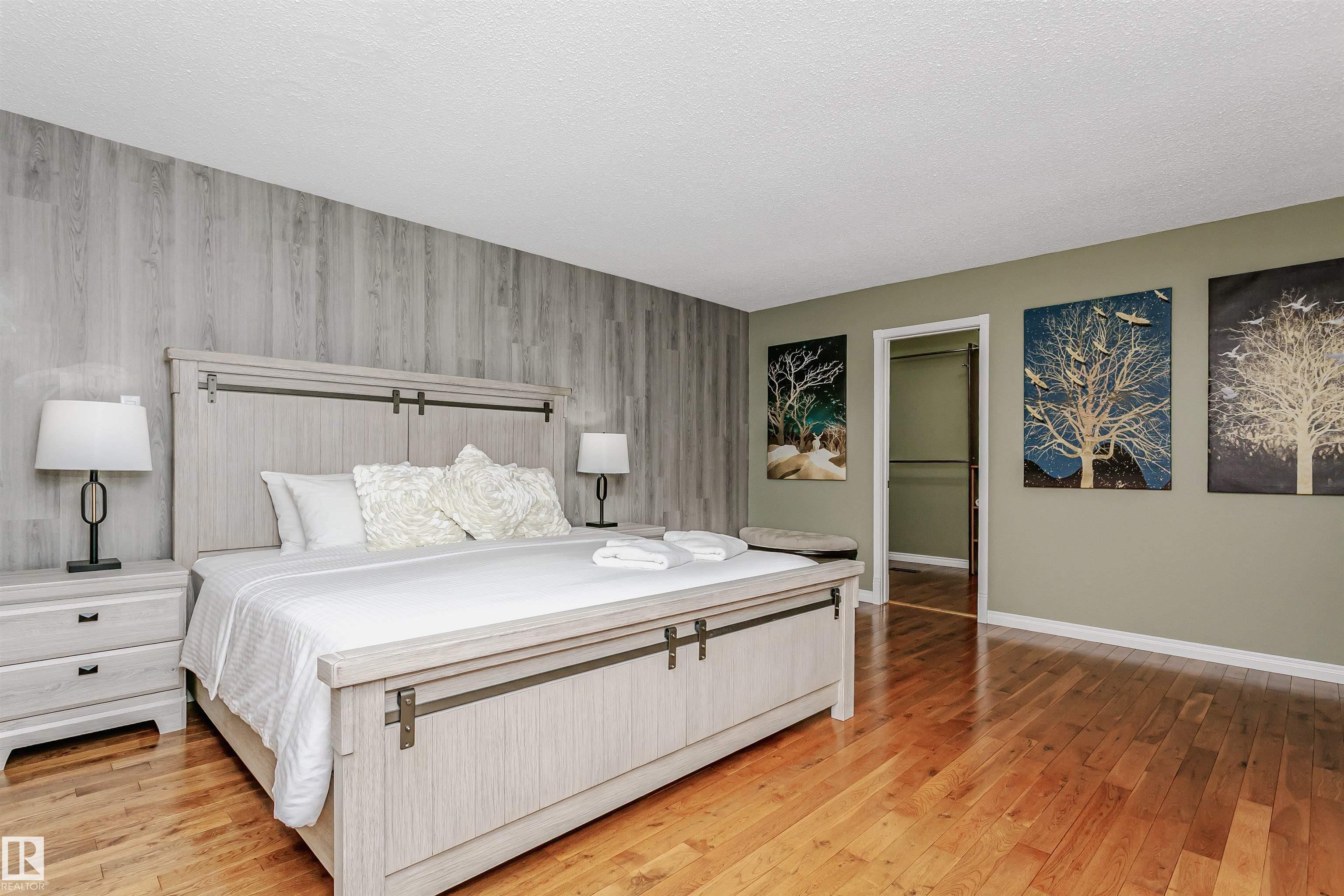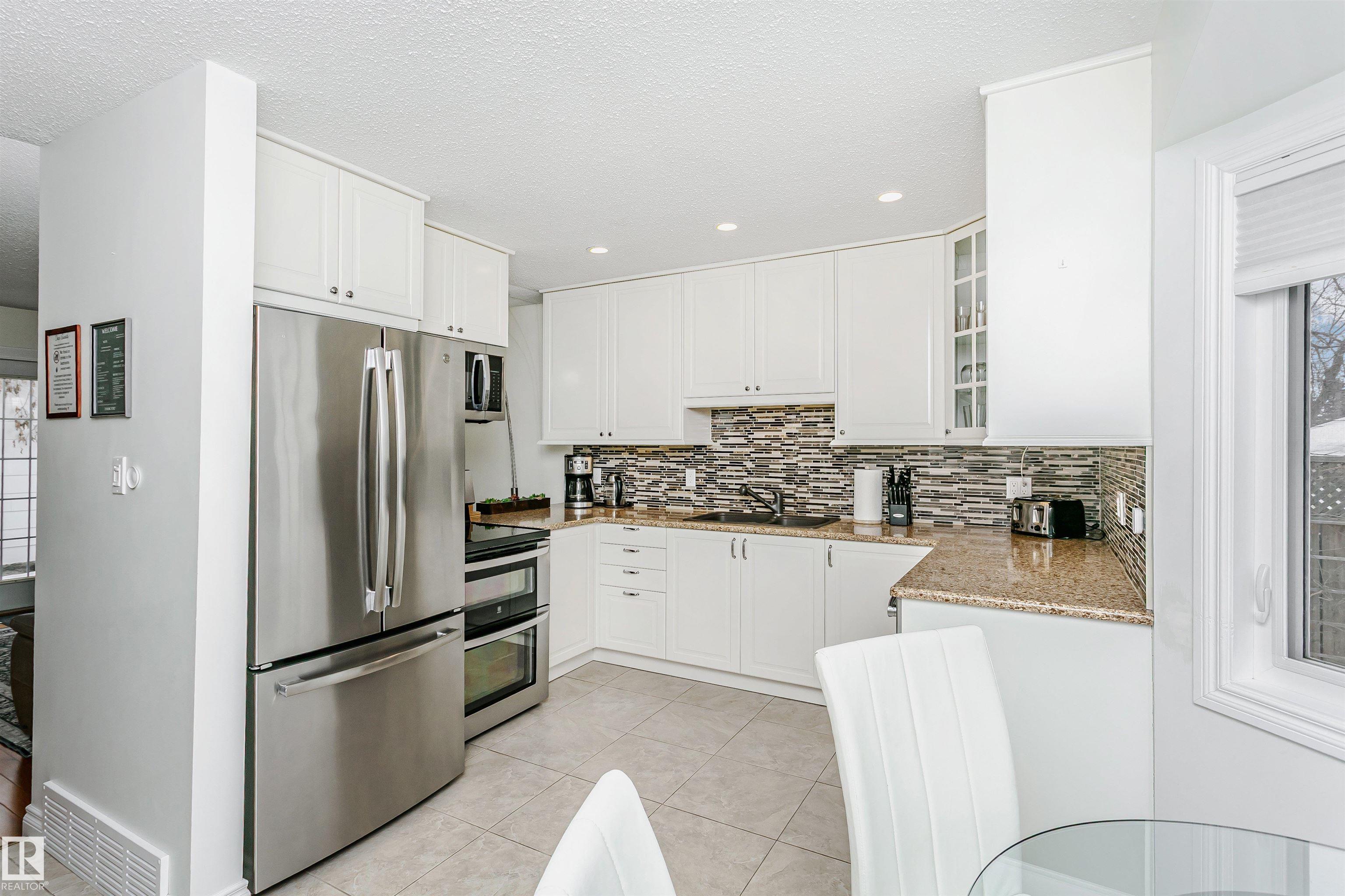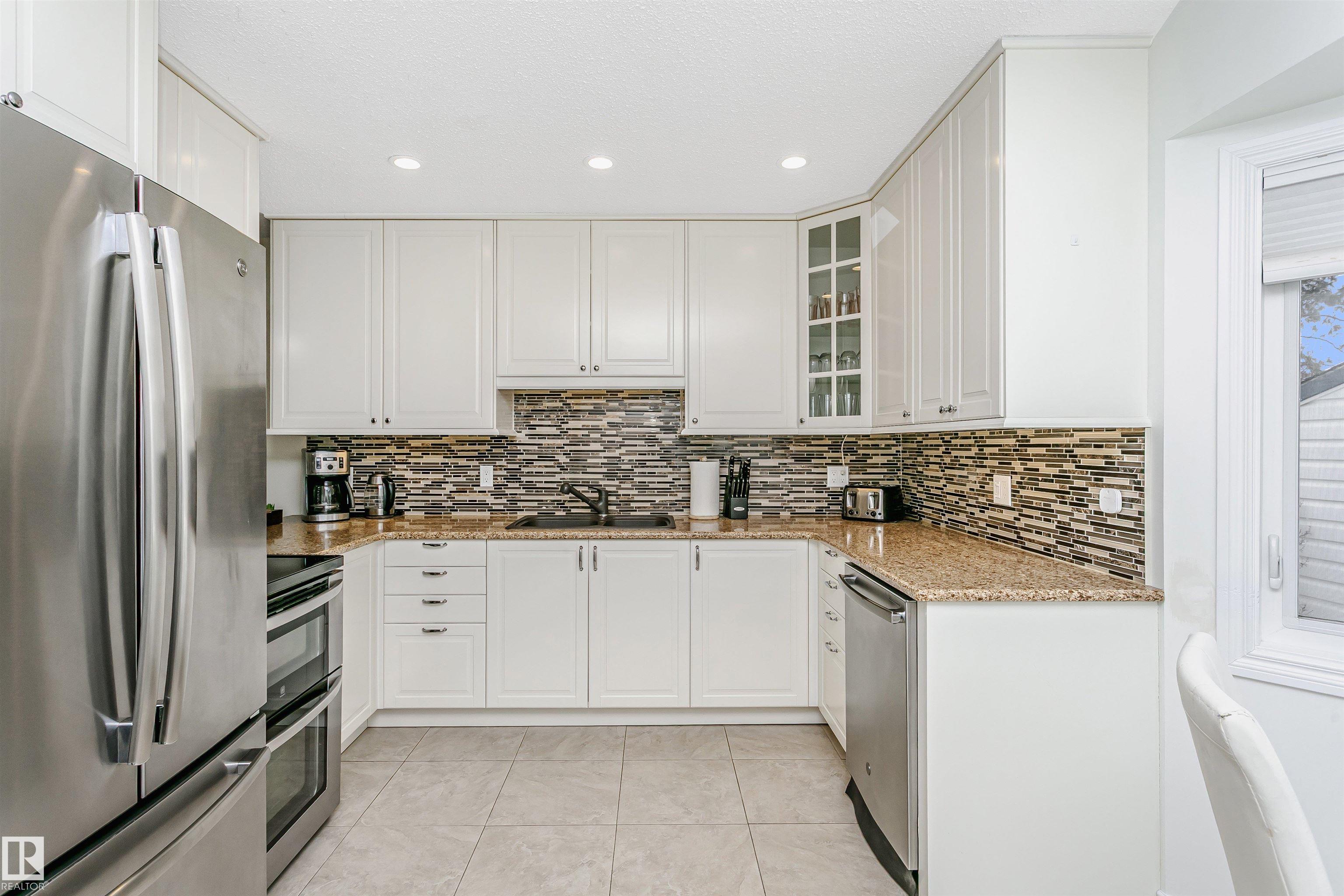 Executive 2-storey, 5 bedrooms, 3.5 bathrooms. It offers elegance & magnificent living spaces, with comfort & functionality. Kitchen w/ quartz counter tops, under mount lighting, gorgeous white cabinetry, ceramic tile flooring, trendy backsplash and stainless steel appliances. Two large living room areas on the main level, one with gas fireplace. Main floor also offers 2-pc powder room, laundry room and access to heated double attached garage. Upstairs you will find 4 bedrooms. Large Primary with a walk-in closet and updated spa-like ensuite. Fully finished basement offers game room with gas fireplace, 5th bedroom, 3-pc bath & storage room. Further features include: high end finishings, gleaming hardwood floors, new windows, new front door, new the garage door, 2 AC units, large deck with built-in gazebo. Beautifully landscaped backyard. Enjoy the sunset views from your Southwest facing backyard. Quick access to WEM, Whitemud A. Henday & future LRT. Close to schools, parks & shopping.